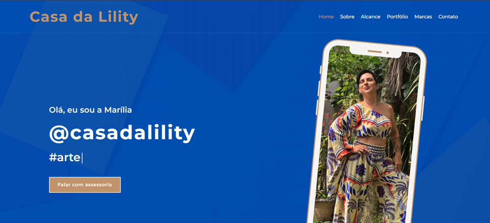 Desenvolvimento de mídia kit em formato de site da influencer e artista Marília, contendo informações comcerciais do seu perfil no Instagram que possui mais de 500k de seguidores.